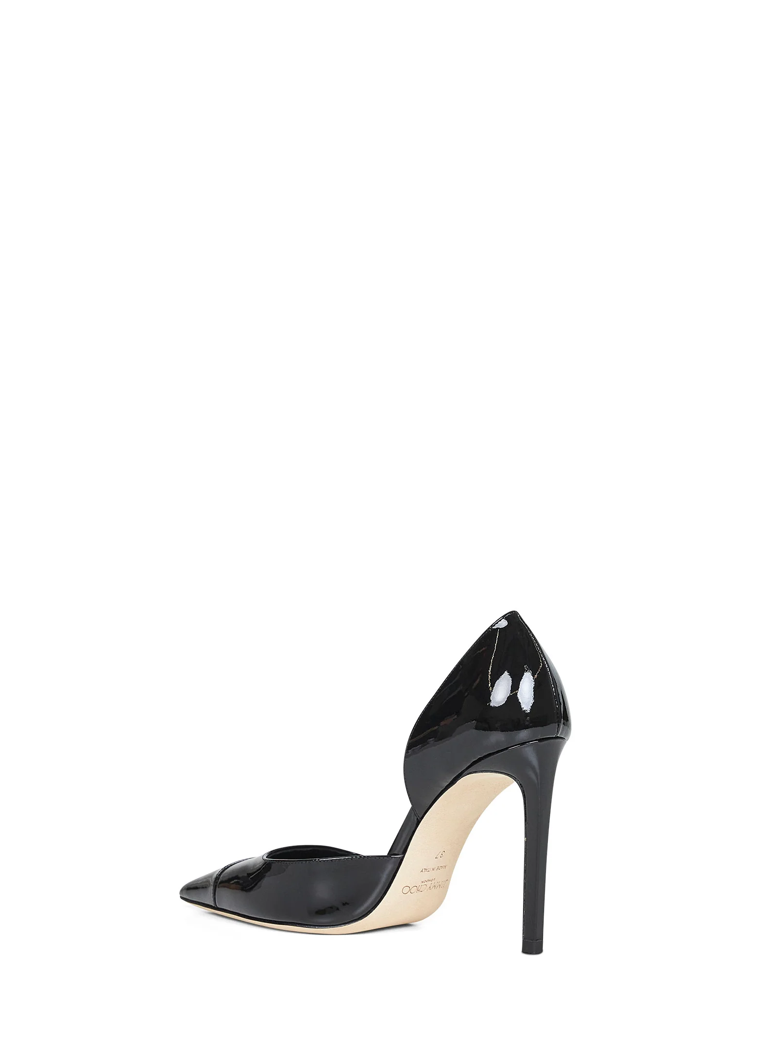 •Slip-on •Pointed toe •Asymmetric signature curvature paneled patent leather upper •Patent leather-covered stiletto heel •Leather lining and insole •Leather sole •Heel height: 100mm •The shoe corresponds to a IT 38 size •Black color •88% Leather, 8% Other Materials, 4% Plastic •Made in Italy