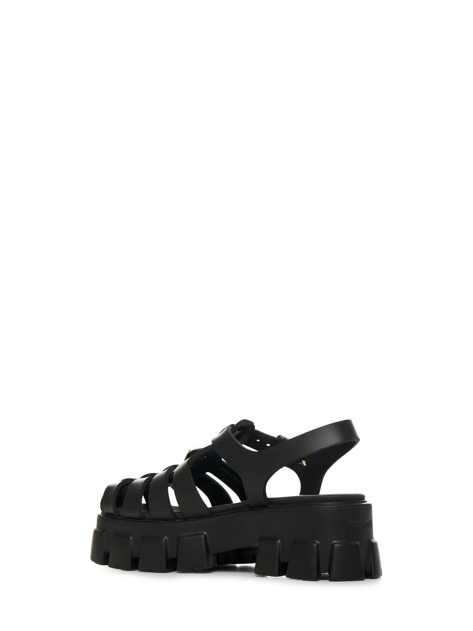 •Adjustable strap with metal buckle •Enamelled metal triangle logo at front •Cage style upper •Monolith rubber sole with lug tread •Black color •100% Acetate •Made in Italy