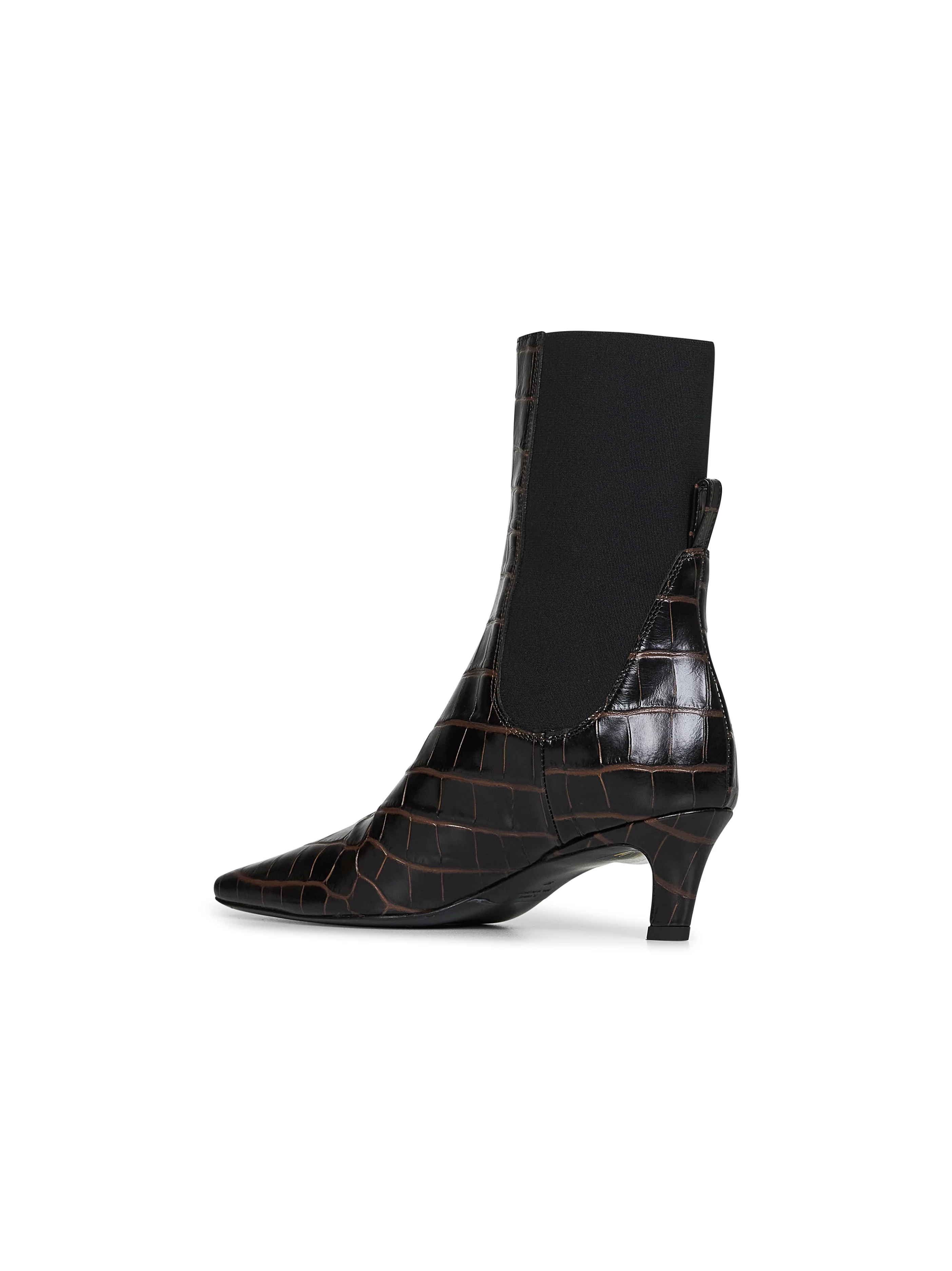 •Slip-on •Square toe •Crocodile embossed leather upper with ribbed elasticated panel from sides to back •Medium crocodile embossed leather covered slanted slanted heel •Leather lining •Leather sole •Heel height: 50mm •Brown color •100% Leather •Made in Italy